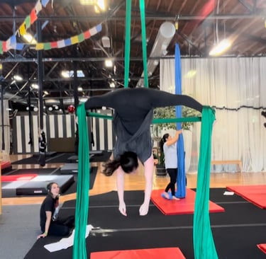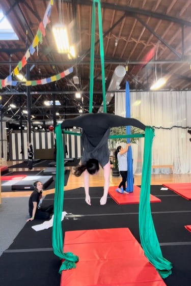 I began training in Aerial Silks in August 2019 at AerialClt, a Charlotte-based studio known for its structured, curriculum-driven approach to aerial fitness. AerialClt provides a wide range of classes. I've consistently trained in Silks since joining, and as of August 2025, I've expanded my practice to include Hammock.